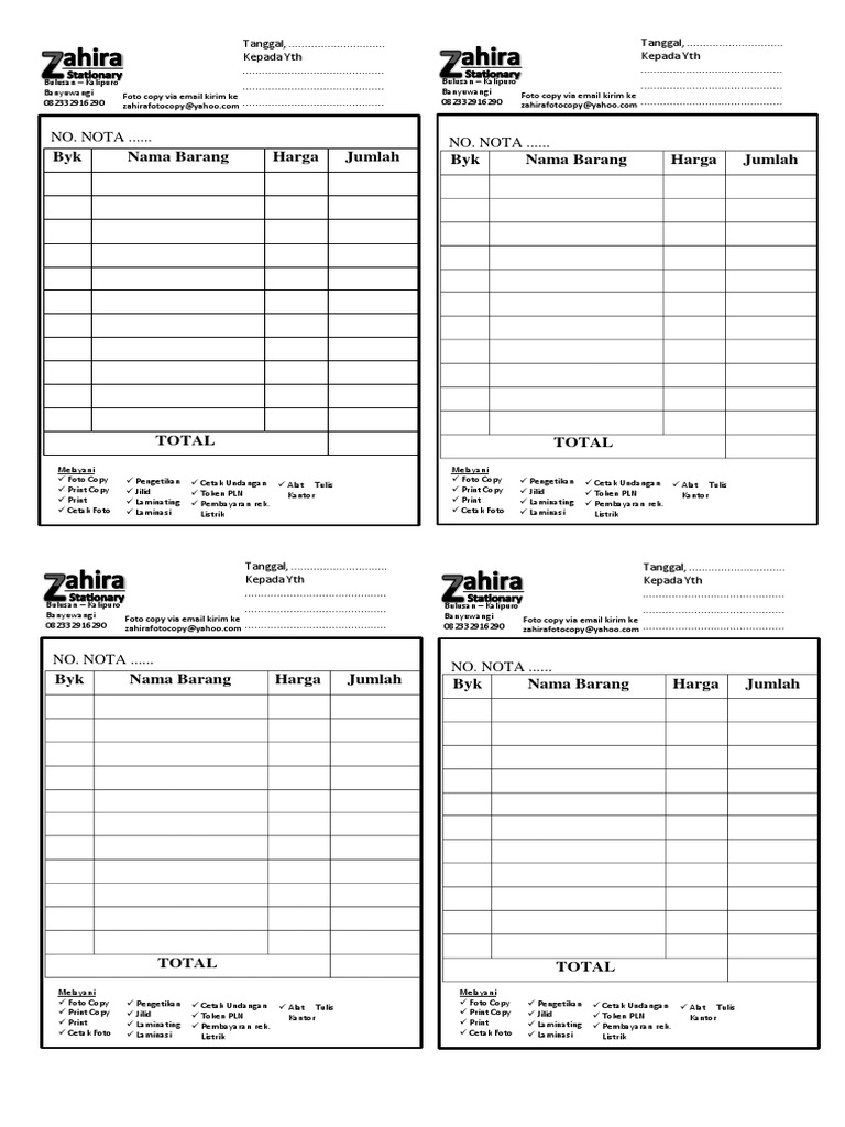 1 20+ template nota gratis format excel kosongan. Nota sendiri mempunyai makna yakni suatu bukti pembayaran terhadap suatu transaksi pada sejumlah layanan atau penjualan yang dilakukan secara tunai. Download tauhid upkk thn 3. 20+ contoh dan template nota kosong siap edit word,excel,psd halo pembaca dyp.im dimanapun anda berada. Secara umum nota ditulis rangkap dua, namun ada juga yang dirangkap tiga. This document was uploaded by user and they confirmed that they have the permission to share it. Ejercicios de subida de nota.docx. Save nota sirah upkk for later. Download nota kosong format word bisa costum sendiri. 0% 0% consideraram este documento útil, marque este documento como útil. Nota fiscal, modelo 1 (art. Hospital edp university san sebastián, puerto rico nota de progreso nombre: Elemen abad 21 dalam pada untuk kita bersaing dalam kemajuan dunia, maka sektor pendidikan haruslah seimbang dengan perkembangan abad ke 21.