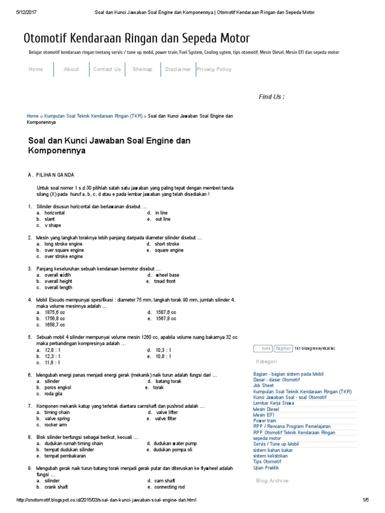 Soal Pilihan Ganda Dan Jawaban Pemeliharaan Mesin Kendaraan Ringan Bukesi My Id from 1.bp.blogspot.com Check spelling or type a new query. We did not find results for: Panjang keseluruhan sebuah kendaraan bermotor disebut. Maybe you would like to learn more about one of these?