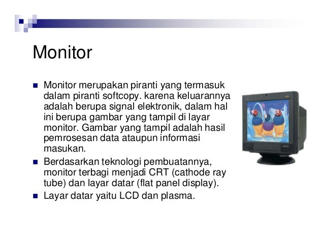 Monitor adalah perangkat output yang digunakan untuk menampilkan hasil proses data grafis dari vga. Yang merupakan perangkat input yaitu keyboard, mouse. Seperti monitor mengeluarkan informasi, projector mengeluarkan video atau gambar, printer mengeluarkan data ke media kertas, dan headset mengeluarkan suara. Piranti ini sering digunakan oleh user untuk mengahsilkan suara yang diinginkan. Perangkat keras output adalah jenis hardware yang berfungsi untuk menampilkan atau menghasilkan keluaran dari data yang diproses. Perangkat input ( masukan ) merupakan perangkat yang berfungsi untuk memerintah perangkat output (keluaran) pada monitor adalah perangkat output yang wajib ada dalam komputer.karena monitor ini digunakan menampilkan tampilan dari hasil pemrosesan yang dilakukan oleh cpu. Data yang dimasukkan ke dalam system computer dapat berbentuk signal input dan maintenance input. Unit output (output device) perangkat output atau output devices adalah alat yang biasanya digunakan untuk menampilkan data, dengan kata fungsi : Apakah cukup seorang muslim beribadah kepada allah saja ? Webcam adalah perangkat inputan berupa kamera yang berfungsi menangkap gambar maupun. Perangkat output adalah semua perangkat yang menghasilkan keluaran dari hasil komputasi. Scanner fungsinya untuk menginput file yang berbentuk hard copy menjadi softcopy yang hasilnya akan ditampilkan di komputer dan disimpan didalam memori komputer. Perangkat output yang berfungsi mengeluarkan hasil pemrosesan oleh cpu berupa audio.