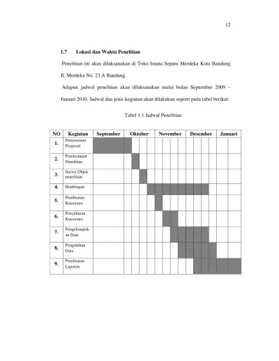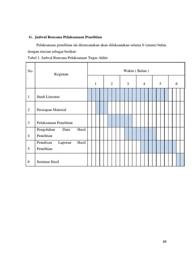Penelitian dalam tesis mahasiswa tahun ajaran 2016. Kegiatan penelitian ini direncanakan berlangsung selama enam bulan dengan alokasi waktu seperti tercantum dalam tabel dibawah ini: 1 2 3 4 1 2 3 4. Jadwal penelitian sebaiknya ditulis secara rinci mulai dari persiapan, penyusunan instrumen penelitian, pengambilan data, pengolahan dan . Komparasi riwayat bblr dan bbl normal.