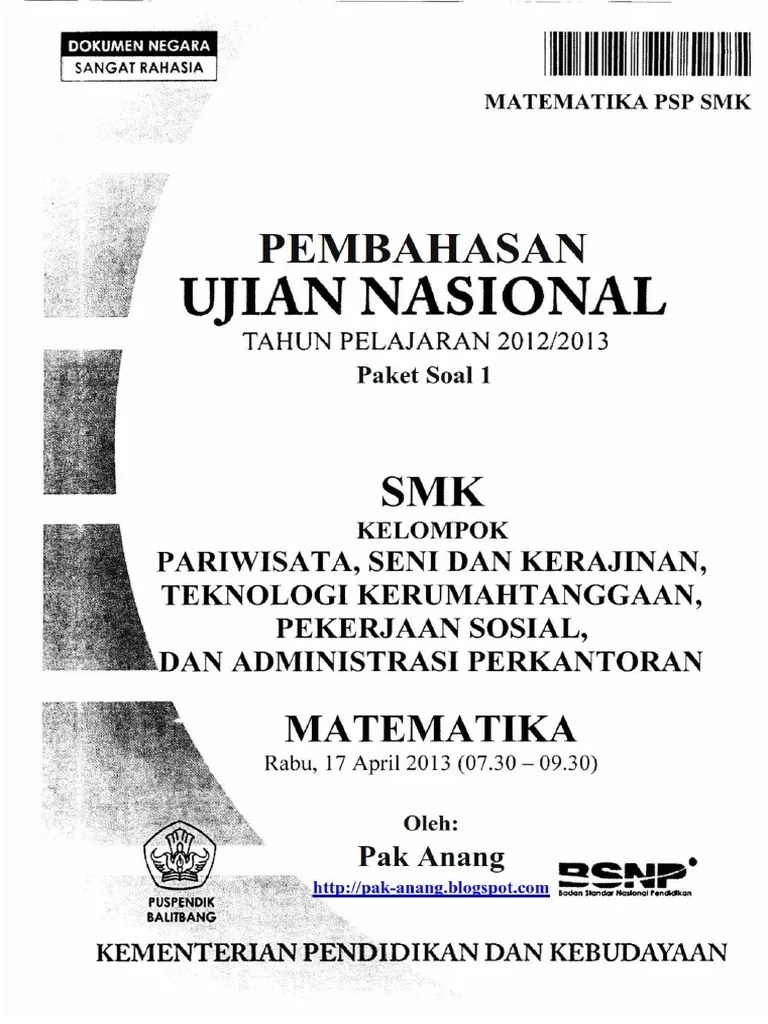 Latihan soal uujian sekolah (us) ppkn smk 2020/2021 kurikulum 2013 (disini). Soal to / prediksi soal ujian nasional (un) sma/smk/ma jurusan ipa/ips 2016. Latihan soal un dan soal ujian sekolah (us) matematika smk. Soal un matematika smk 2013 tkp paket 1. Selain itu anda juga sanggup mendownload aneka pembahasan soal un dan kumpulan rumus cepat dan smart solution serta trik superkilat un pada bab kanan blog ini. (matematika, bahasa indonesia, bahasa inggris dan ipa) dalam format pdf yang dapat . Download soal un matematika smk 2013 (kelompok akuntansi). Soal prediksi un matematika sma ipa 2016 & kunci jawaban download Pada kesempata ini kami akan membagikan soal ujian nasional baik unbk. File kumpulan soal un 2013 ini terdiri dari 14 paket soal un matematika tkp smk 2013, dan semuanya telah dijadikan dalam satu file pdf yang . Berikut ini adalah kumpulan arsip soal asli un smk 2013 yang bisa didownload. Download soal un smk 2018 bahasa indonesia, unbk matematika smk 2019 dan pembahasannya, download soal un bahasa inggris 2018 pdf,. (1 kode paket soal) (kelompok pariwisata, seni dan kerajinan, teknologi kerumahtanggaan, pekerjaan sosial,